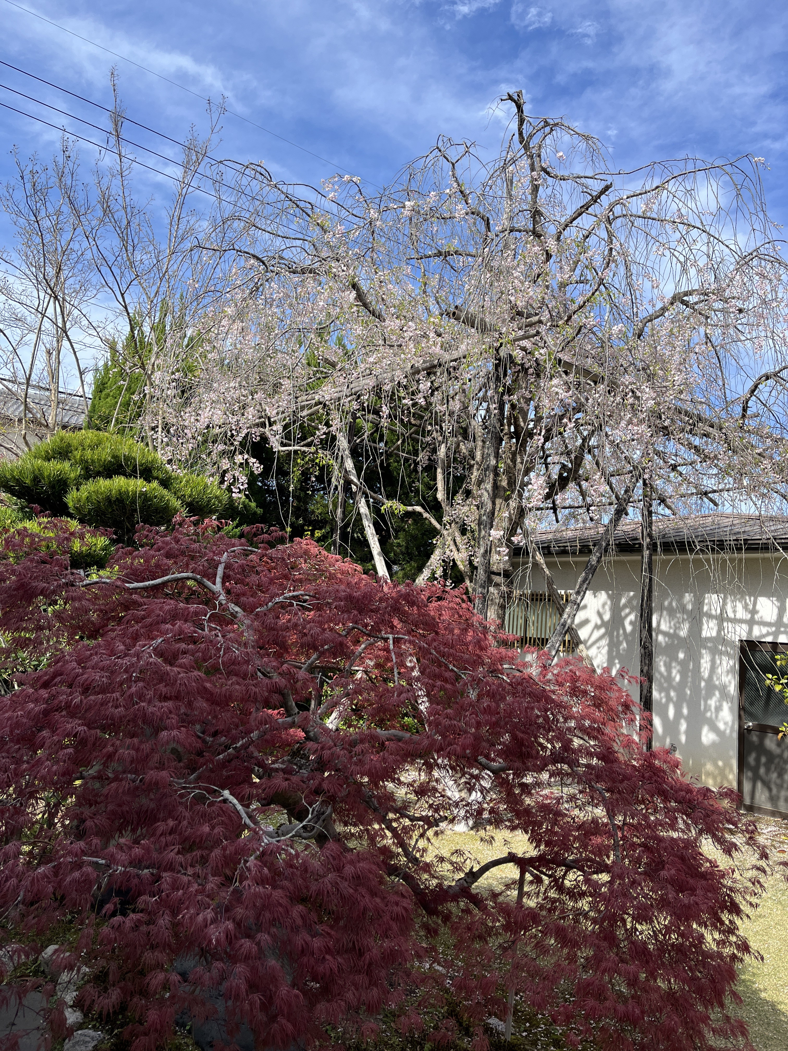 枝垂れ桜が綺麗に咲いていて