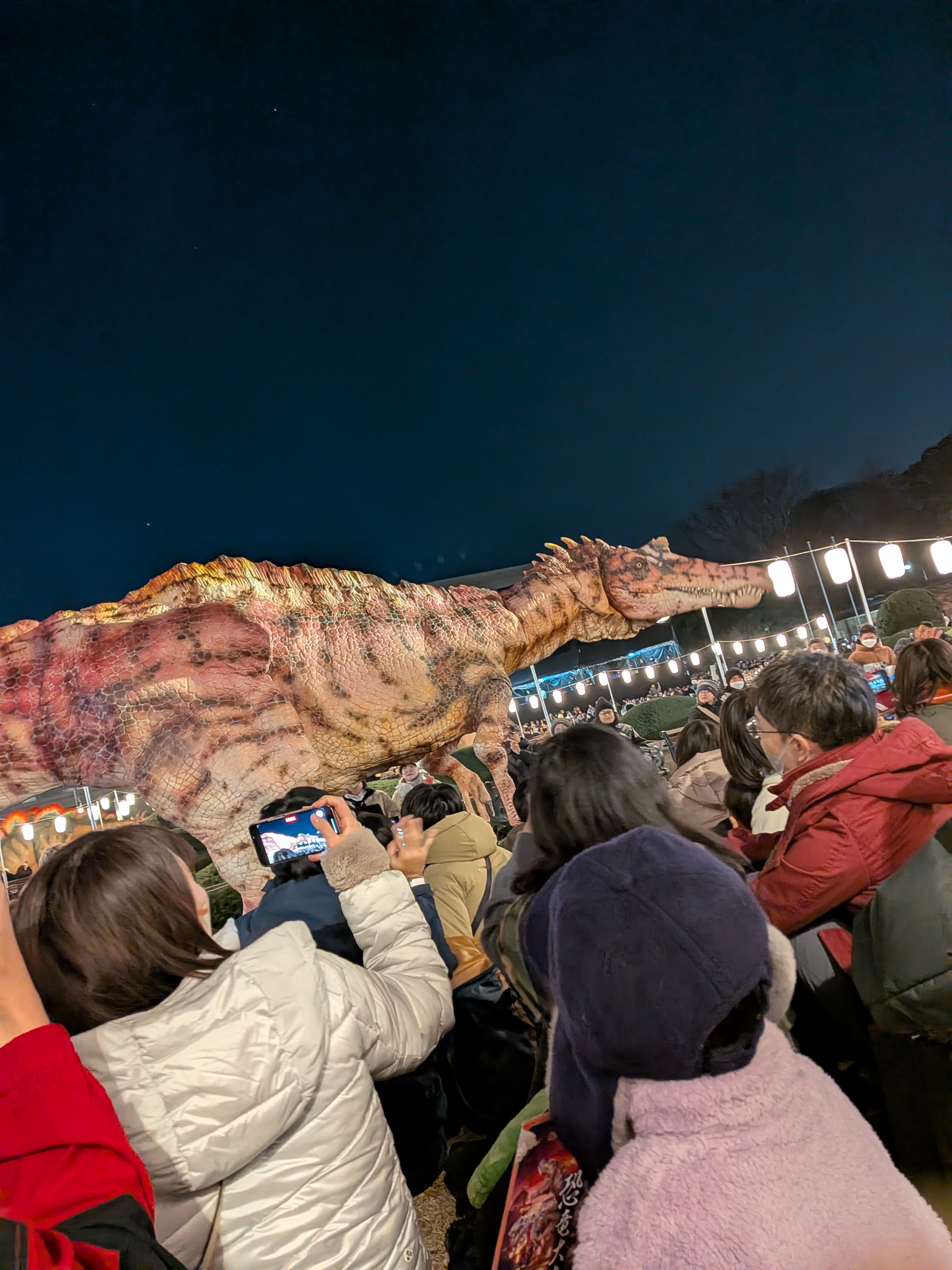 ディノアライブという、リアルな恐竜達は何度か単体で見たことはありましたが、その恐竜達が勢揃いし、夜の博物館の前を闊歩する様子はとても迫力があり楽しかったです😳!