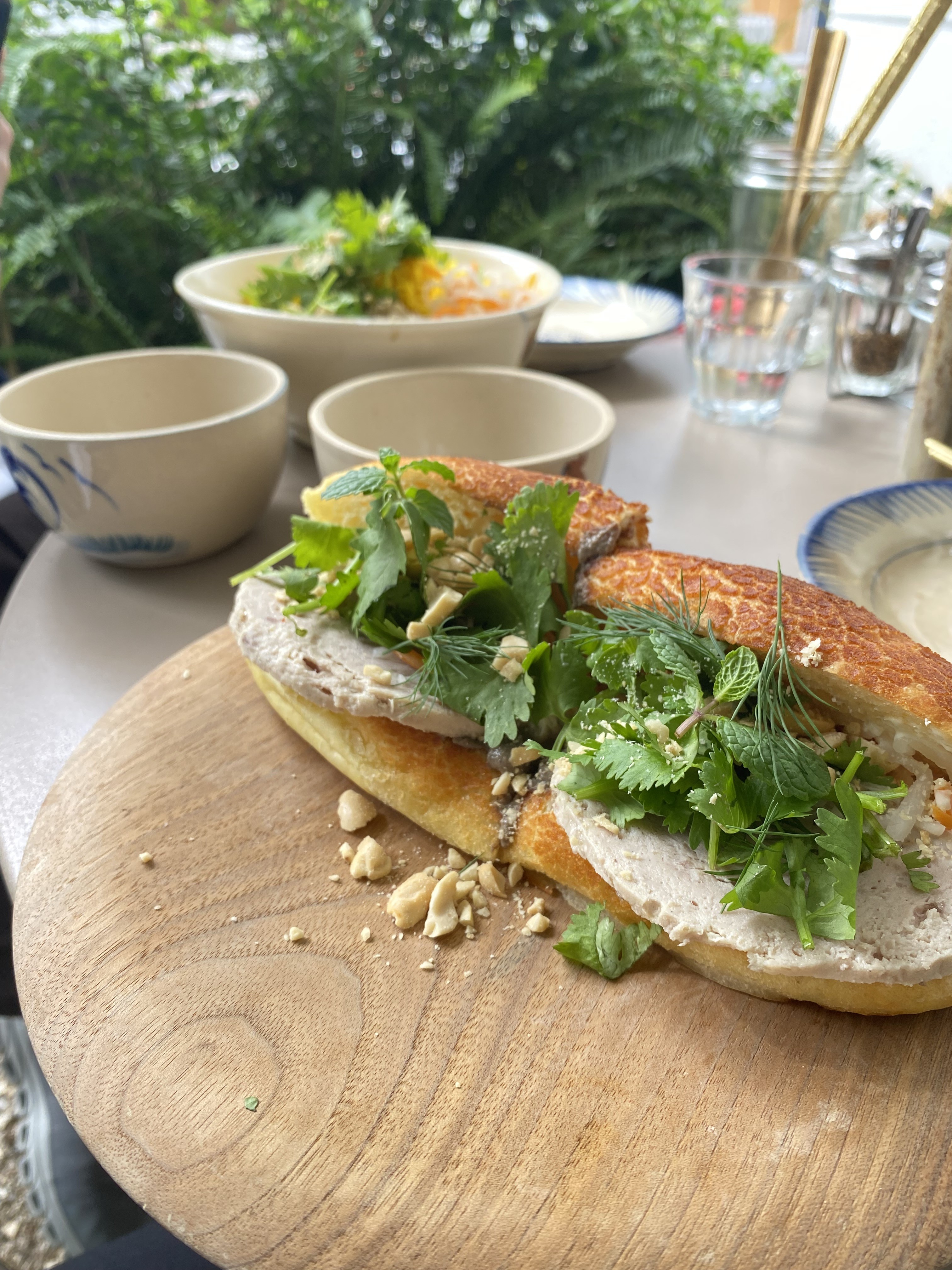私はこちらのハーブがモリモリのバインミーを頂きました☺️自家製のパテがとっても美味しく、ナッツ🥜やハーブがたくさんでなんだか楽しいお味でしたよ✨お天気も良く写真もとっても映えてませんか?笑